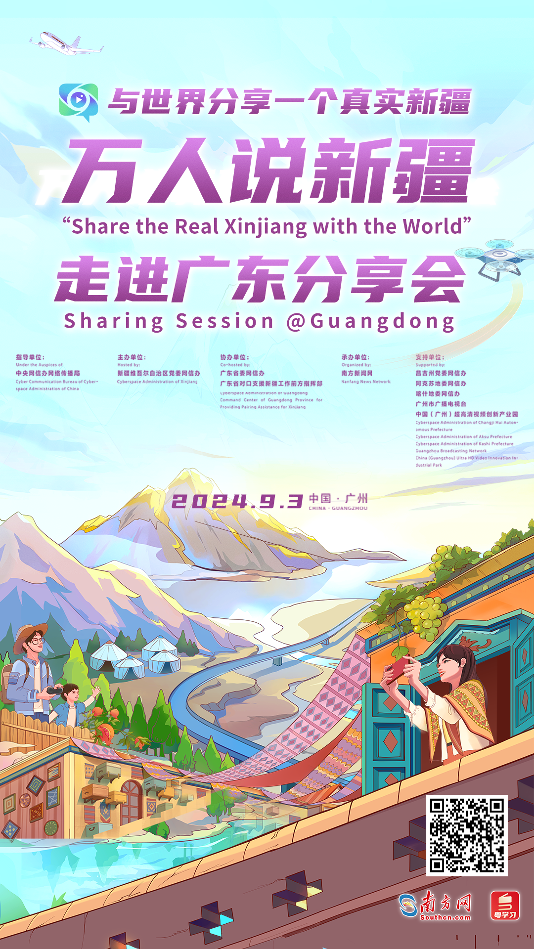 在交流互鑒中把新疆溫柔地說與全世界,在新粵兩地合作中感悟跨“粵”千里的援疆故事?!叭f人說新疆”走進廣東分享會將于9月2日至3日在廣州舉行。此次活動由新疆維吾爾自治區(qū)黨委網(wǎng)信辦主辦,廣東省委網(wǎng)信辦、廣東省對口支援新疆工作前方指揮部協(xié)辦,南方新聞網(wǎng)承辦。分享會從國內知名學者、外籍專家、海內外博主、援疆干部、港澳青年等不同視角,講述有溫度、有情懷、接地氣的美好新疆故事。