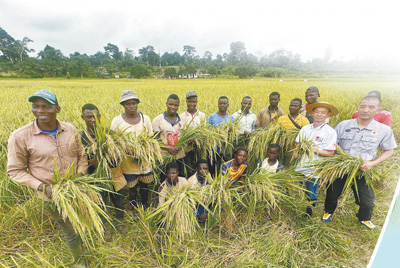 位于科特迪瓦迪沃省的格格杜墾區(qū)于1997年迎來第一批中國(guó)農(nóng)業(yè)技術(shù)合作組專家,經(jīng)過近30年的努力,墾區(qū)已成為中科兩國(guó)農(nóng)業(yè)合作示范基地和科特迪瓦全國(guó)聞名的水稻種植基地。圖為中國(guó)農(nóng)業(yè)專家與當(dāng)?shù)剞r(nóng)民在水稻田中慶祝豐收。