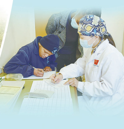 自1997年以來,中國(guó)湖北省承擔(dān)向萊索托王國(guó)派遣醫(yī)療隊(duì)的任務(wù),醫(yī)療隊(duì)隊(duì)員在當(dāng)?shù)卦\治了大量常見病、多發(fā)病,治愈了眾多疑難病癥,深受萊索托民眾歡迎與尊敬。圖為第十八批中國(guó)援萊索托醫(yī)療隊(duì)醫(yī)生王琦正在接診患者。