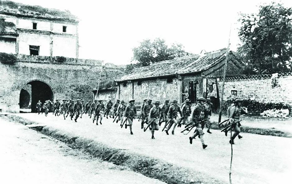 圖為駐守宛平城的中國(guó)軍隊(duì)奔赴盧溝橋抵抗日軍。
