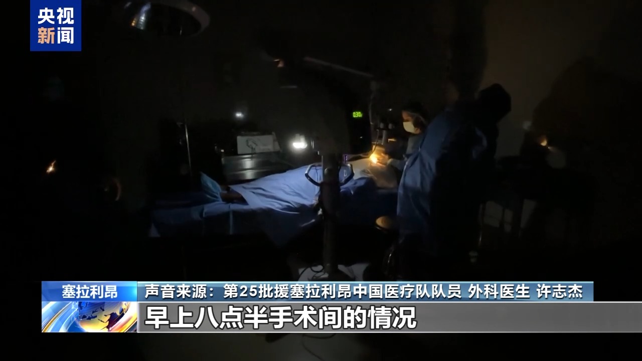 第25批援塞拉利昂中國醫(yī)療隊隊員 外科醫(yī)生 許志杰:做眼科手術第二臺,(患者)還沒打麻醉,突然停電了,大家就打著手機光,用著應急電源在做手術。