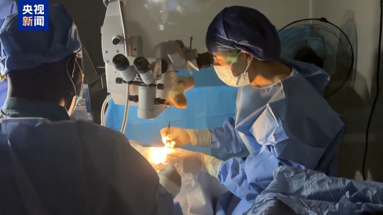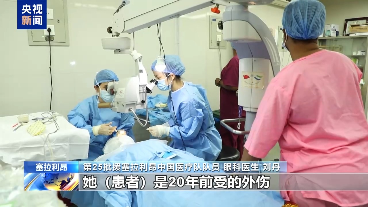 第25批援塞拉利昂中國醫(yī)療隊隊員 眼科醫(yī)生 劉丹:她(患者)是20年前受的外傷,然后角膜帶斑翳,就是虹膜粘連,很難的一個白內障(手術)。這里的白內障都是好重的,是那種完全看不見的。
