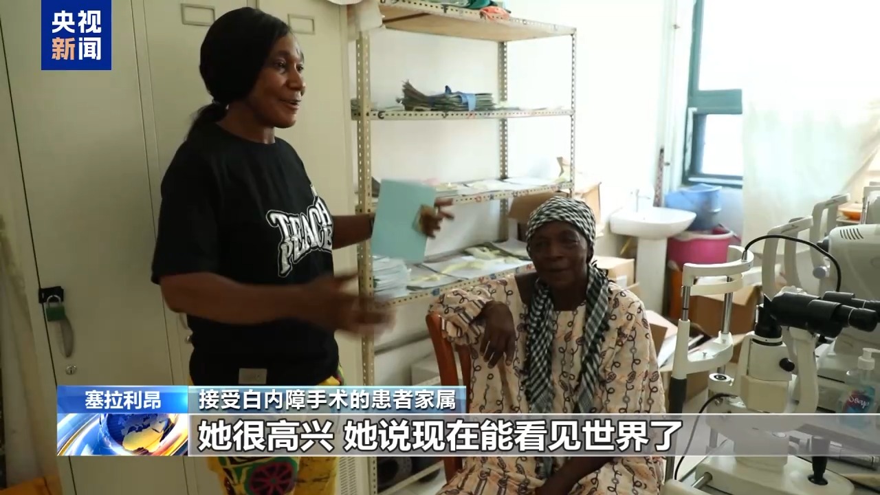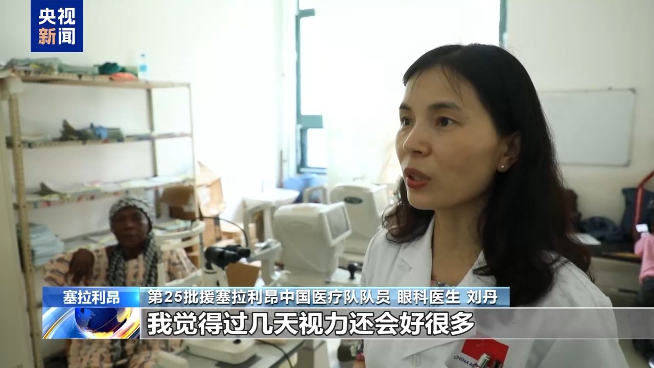 第25批援塞拉利昂中國醫(yī)療隊隊員 眼科醫(yī)生 劉丹:這是昨天一個(接受)白內障手術的病人,她術前的視力只能看見眼前的手在動,手指頭都分辨不太清楚。今天一打開(紗布)視力是0.3,我覺得過幾天視力還會好很多。