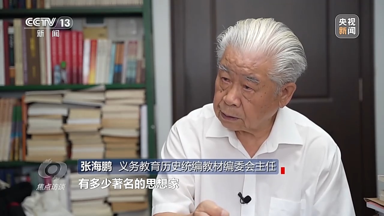 義務(wù)教育歷史統(tǒng)編教材編委會(huì)主任 張海鵬:講我們中國(guó)歷史上每一代有多少著名的思想家,有多少著名的政治家、軍事家、戰(zhàn)略家、科學(xué)家,對(duì)人類(lèi)有貢獻(xiàn)的發(fā)明創(chuàng)造、文學(xué)藝術(shù)。這就是告訴我們,中華的文化是優(yōu)秀的,是值得我們熱愛(ài)的。