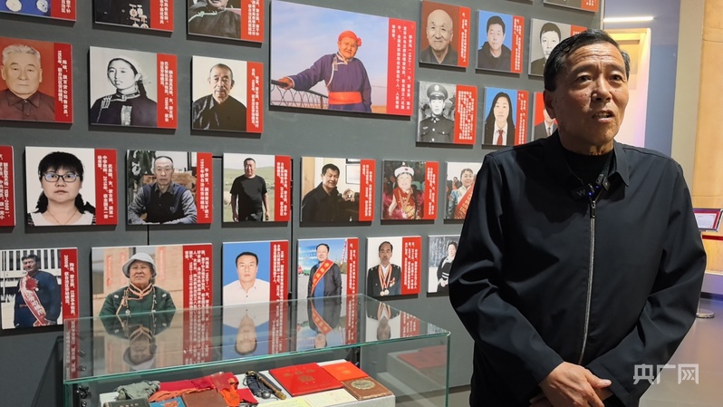 9月4日,淅淅瀝瀝的雨下個(gè)不停。下午三時(shí)許,孫保衛(wèi)來到四子王旗博物館展廳,在“人民楷?!倍假F瑪展區(qū)駐足良久。他是都貴瑪額吉養(yǎng)育的28個(gè)“國(guó)家的孩子”中年齡最小的一個(gè)。