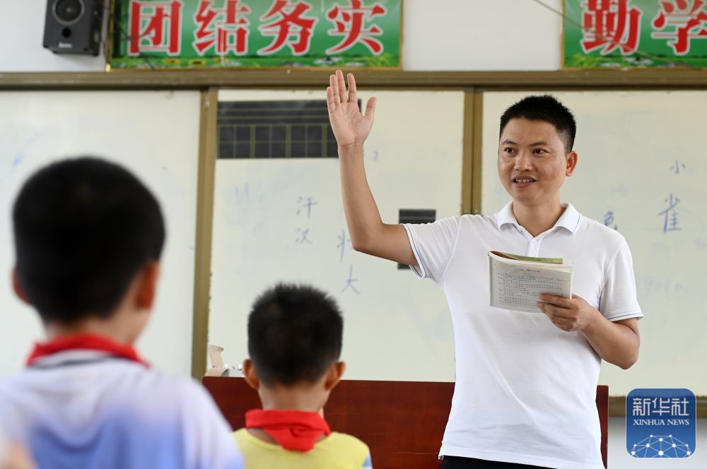 在廣西南寧市邕寧區(qū)中和鎮(zhèn)中心學(xué)校那才教學(xué)點(diǎn),“85后”老師滕永社在給學(xué)生上課(9月5日攝)。