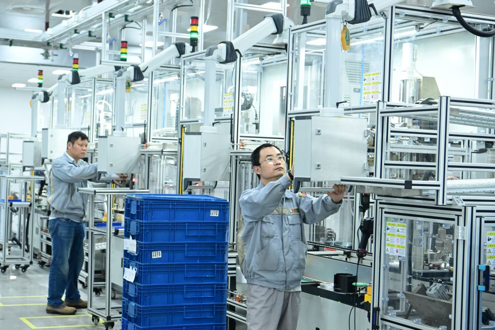 在江蘇省太倉港經(jīng)濟技術開發(fā)區(qū)博馬(蘇州)控股有限公司,生產(chǎn)技術人員正在生產(chǎn)汽車渦輪增壓器產(chǎn)品(6月19日攝)。