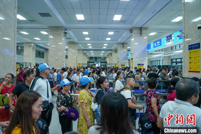 8月31日,旅客在中越邊境河口口岸排隊辦理通關(guān)手續(xù)。(河口出入境邊防檢查站供圖)