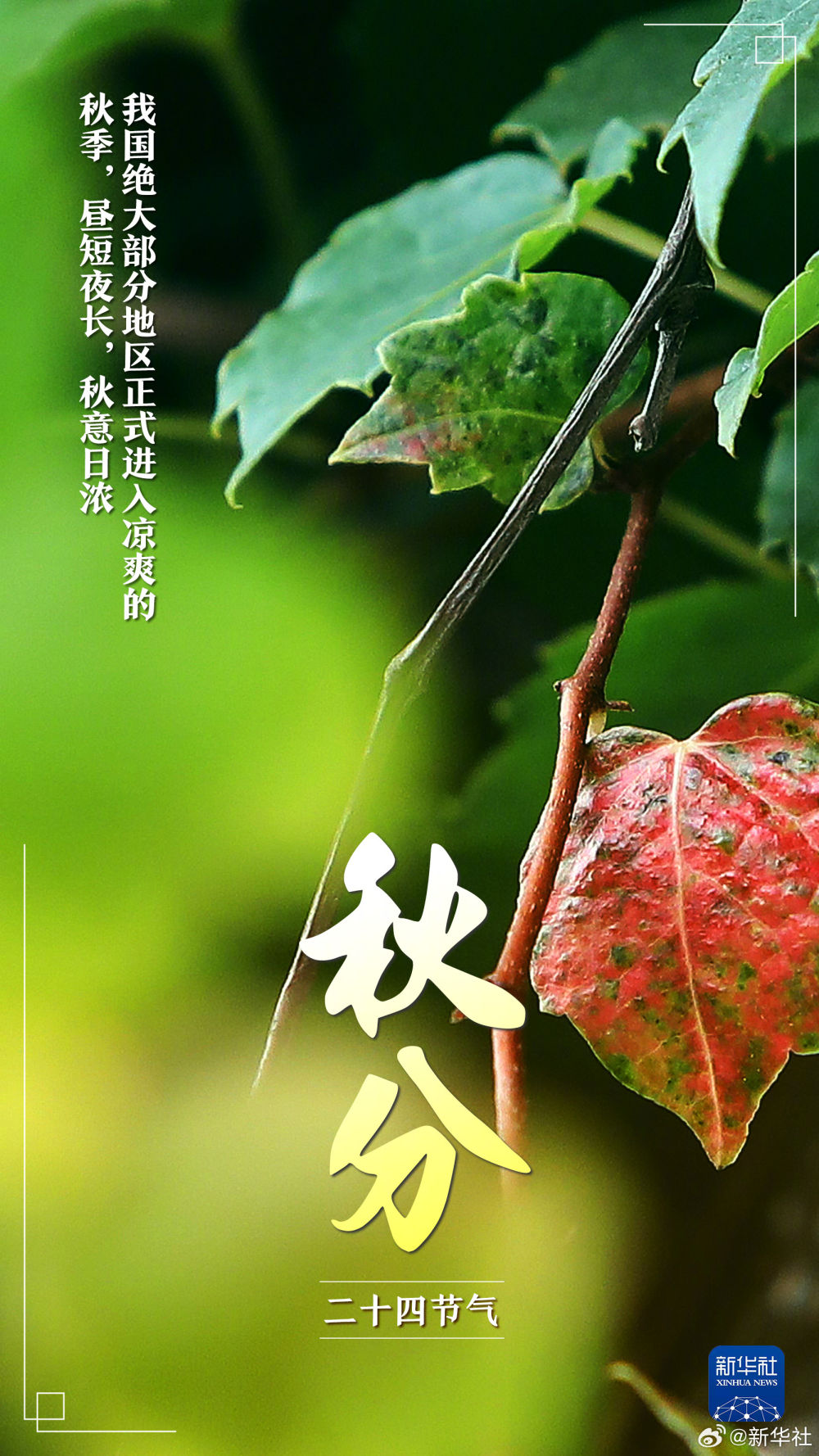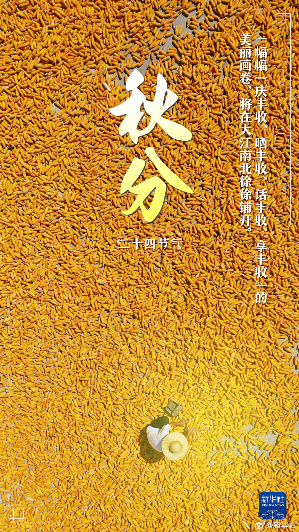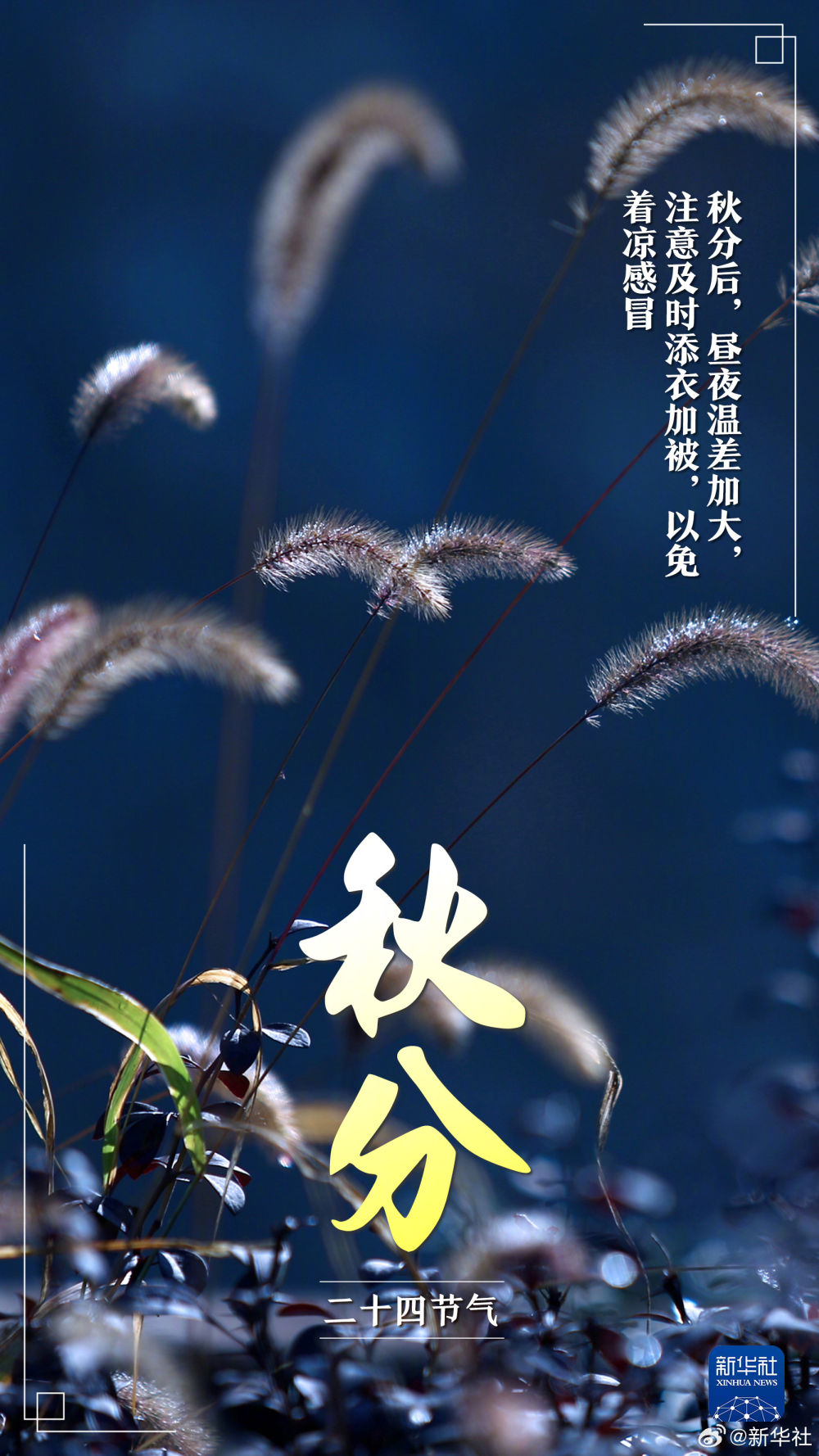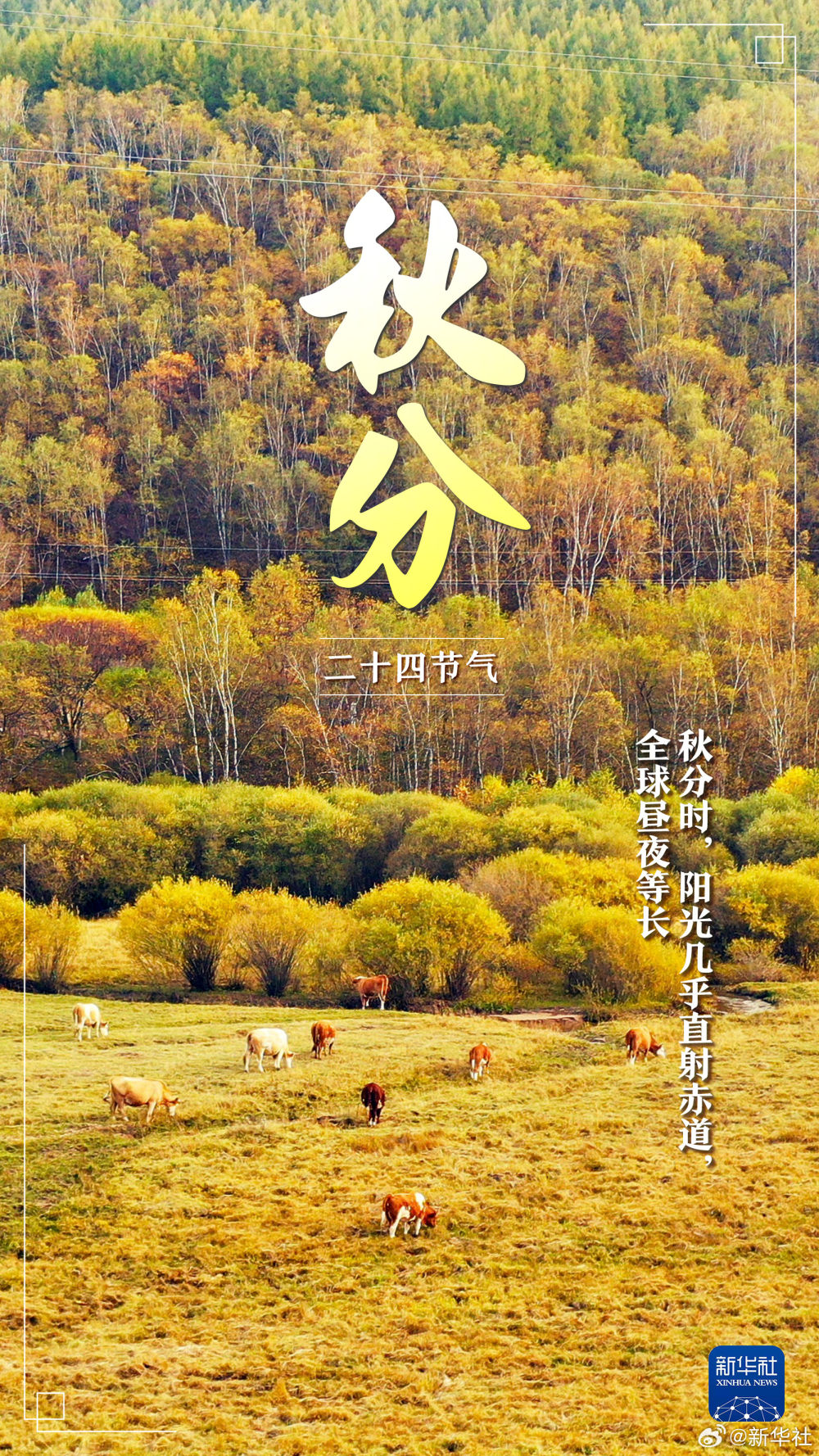 【今日秋分,共慶豐收】①北京時(shí)間9月22日20時(shí)43分迎秋分;②秋分陽光幾乎直射赤道,晝夜等長(zhǎng);③秋分后晝夜溫差加大,記得及時(shí)添衣加被;④秋分也是農(nóng)民豐收節(jié)。讓我們?cè)诠瞎h香、碩果累累的喜悅中,一起迎接收獲的金秋!