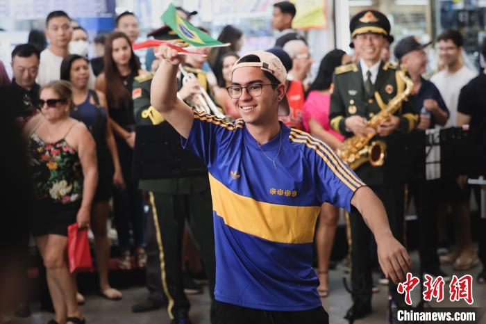 當(dāng)《巴西水彩畫》《依帕內(nèi)瑪?shù)呐ⅰ返劝臀鳟?dāng)?shù)囟炷茉數(shù)臉非懫饡r(shí),現(xiàn)場氛圍掀起一個(gè)高潮,熱情奔放的巴西民眾紛紛走進(jìn)“舞臺(tái)”中央,跟著節(jié)奏扭起了巴西特色的桑巴舞,還有人情不自禁地哼起了歌曲。