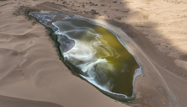2024年7月31日拍攝的巴丹吉林沙漠中的南海子(無人機(jī)照片)。