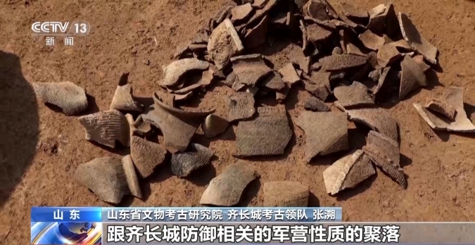 山東省文物考古研究院、齊長(zhǎng)城考古領(lǐng)隊(duì)張溯:它跟齊長(zhǎng)城又有道路相連接,還發(fā)現(xiàn)了一些紅燒土、灶之類的跟生活相關(guān)的遺跡,所以我們推斷它是跟齊長(zhǎng)城防御相關(guān)的軍營(yíng)性質(zhì)的聚落。