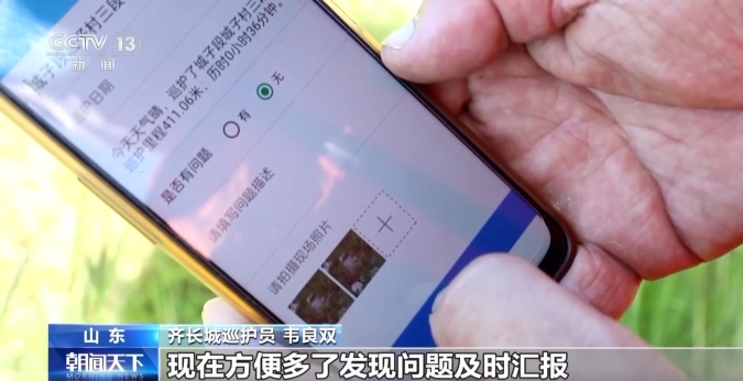 不只新材料,近年來(lái)山東出臺(tái)《山東省齊長(zhǎng)城保護(hù)條例》,依據(jù)齊長(zhǎng)城在沿線7座城市的長(zhǎng)度和巡護(hù)任務(wù)量,共設(shè)置了860名公益巡護(hù)員,每天一次對(duì)齊長(zhǎng)城進(jìn)行巡護(hù)。在齊長(zhǎng)城淄博段,記者看到,現(xiàn)在巡護(hù)員們還有了“智慧幫手”。
