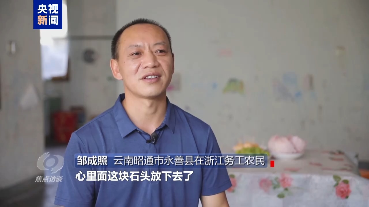 云南昭通市永善縣在浙江務(wù)工農(nóng)民 鄒成照:心里面這塊石頭放下去了,我的第一個(gè)愿望就是希望我的孩子跟城里的孩子一樣,能夠享受到城市之間這種便利、發(fā)展。