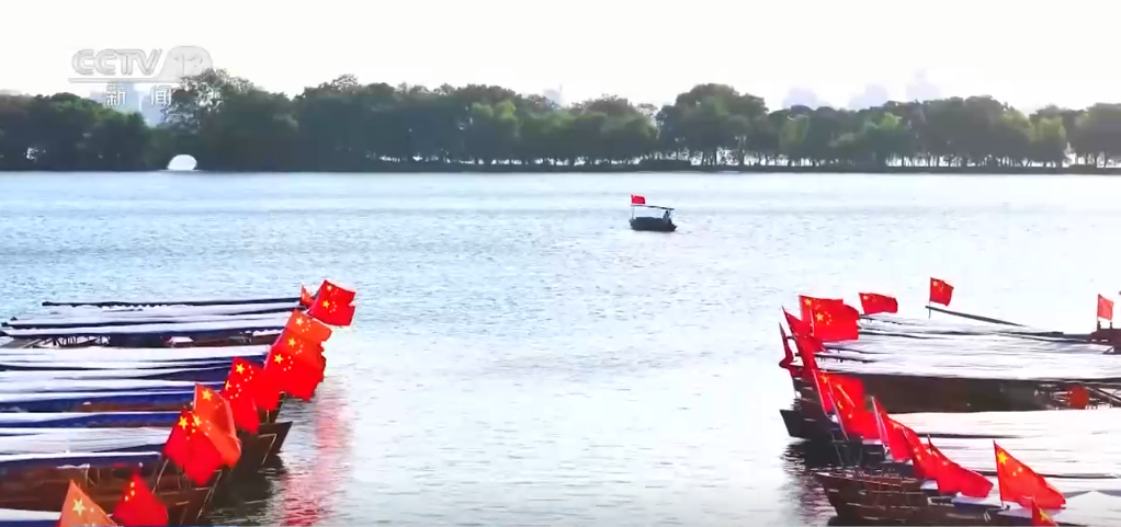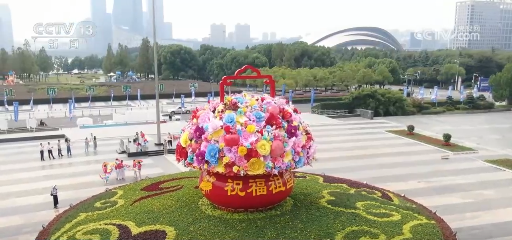 在浙江杭州,西湖上的游船掛起五星紅旗,紅旗與湖水交相輝映,構(gòu)成秋日美麗畫卷;在云南紅河,建水古城裝飾一新,古色古香的建筑在國旗映襯下別有韻味;在貴州貴陽,多處城市地標(biāo)布置了國慶主題景觀花壇;在江西南昌,國慶立體花卉造型“祝福祖國繁榮昌盛”亮相八一廣場,花卉造型由約5萬盆鮮花搭配組成,融入中國結(jié)、華表、飄帶元素,表達著人們對祖國的深深祝福;在安徽合肥,用花卉、水果打造的大型花籃象征著花團錦簇、碩果累累,吸引市民打卡拍照。