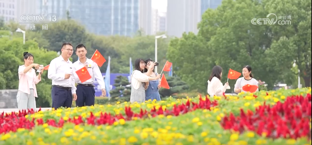 內(nèi)蒙古呼和浩特、鄂爾多斯等地,主干道和重要場所已裝扮一新,一面面鮮艷的五星紅旗飄揚在大街小巷。在錫林浩特市,一處鮮紅色的“我和國旗合個影”背景板格外引人注目,成為市民們爭相拍照打卡的熱門“景點”。