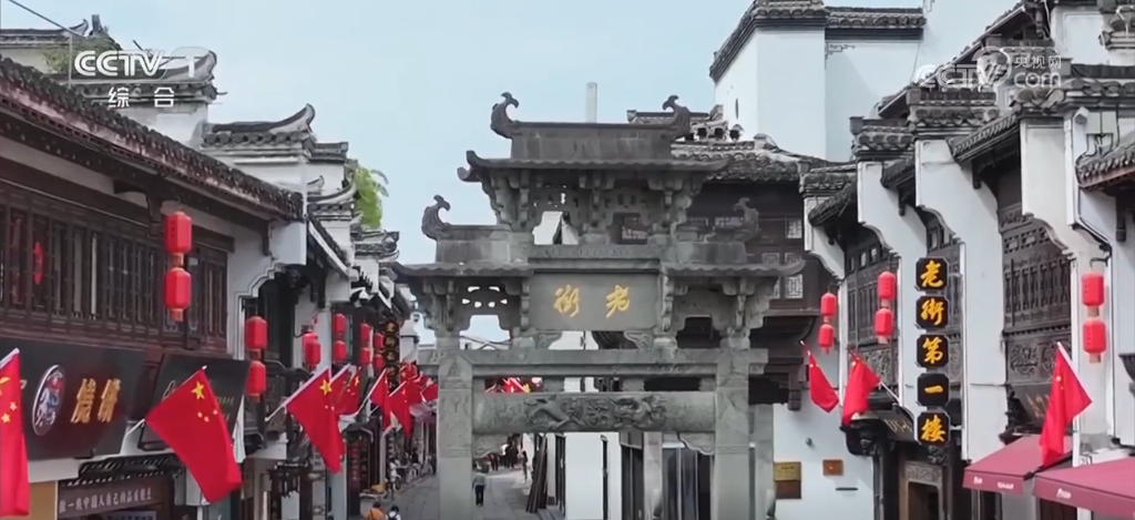 安徽黃山:國旗與徽派建筑交相輝映 扮靚老街