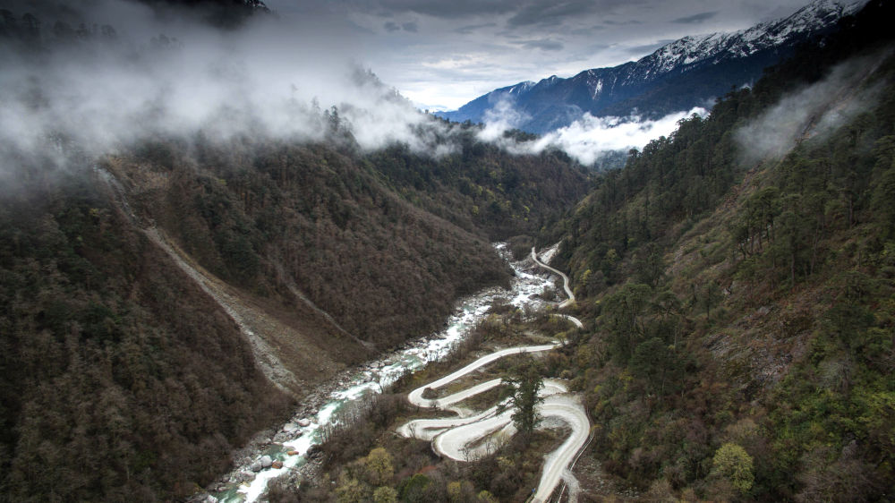 2017年3月30日,西藏墨脫公路上空云霧繚繞。2013年,墨脫公路正式通車,實(shí)現(xiàn)我國(guó)“縣縣通公路”。新華社記者 普布扎西 攝