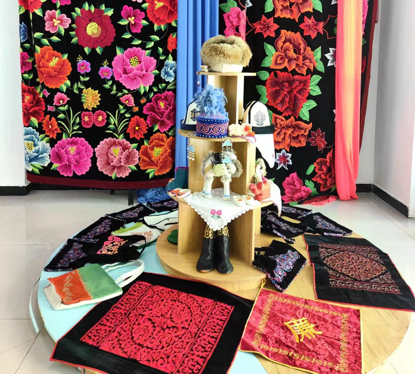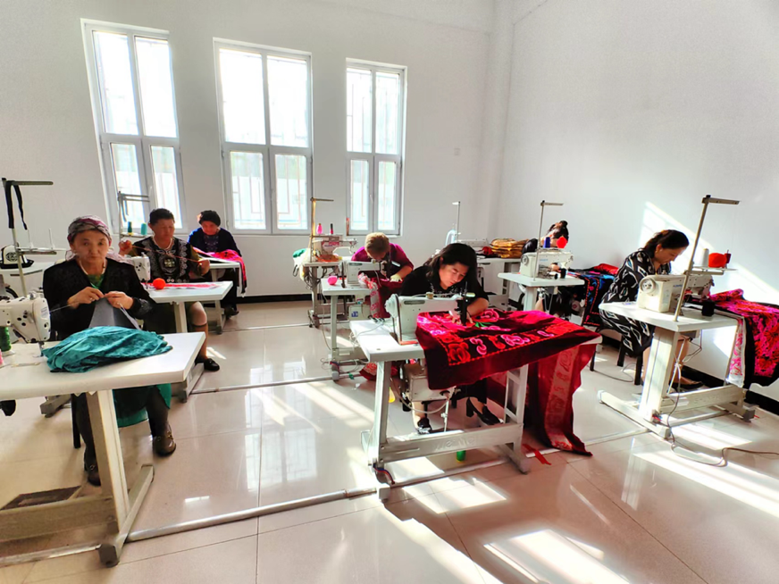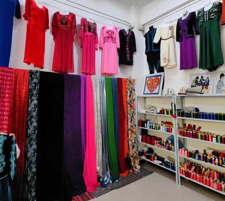 托云牧場積極鞏固政策支持,集中力量打造項目驅(qū)動,有效推進地方產(chǎn)業(yè)集群的全面發(fā)展,實現(xiàn)經(jīng)營集約化與產(chǎn)業(yè)高效整合。2015年,由牧場“刺繡巧匠”吐孔·沙熱牽頭并成功注冊了“托云牧場帕米爾刺繡”合作社。到了2019年,牧場成功申請到160萬元援疆資金,用于建設(shè)新的手工刺繡產(chǎn)品生產(chǎn)基地。在吐孔·沙熱的帶動下,合作社目前擁有60名成員,其中43名技藝嫻熟的繡工,年總收入攀升至三十萬。該合作社通過直銷、與克州百來思服裝店的業(yè)務合作,以及接受附近學校的校服訂單等多種渠道,將其生產(chǎn)的床品、家居布藝、女性服裝及校服推向阿圖什市、烏恰縣等地區(qū)市場。