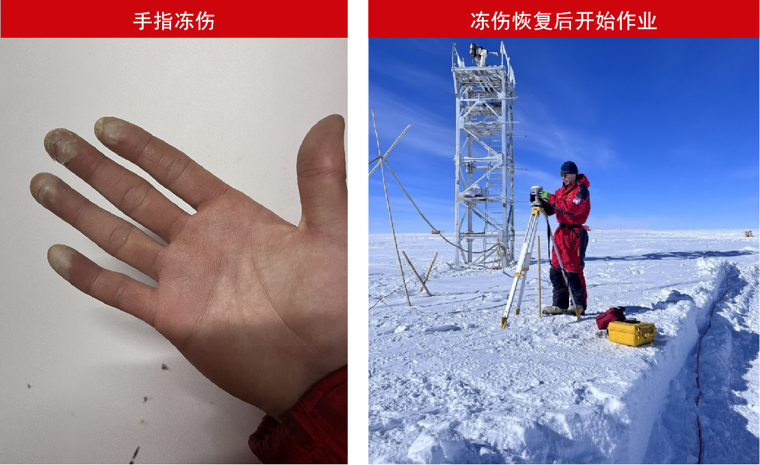 真正到了南極,他也親身體會了這些生死挑戰(zhàn)。在剛剛抵達昆侖站開展作業(yè)的過程中,因為需要點觸手機屏幕,不能穿戴厚手套,超過零下30度的極寒凍傷了他的手指,隨隊醫(yī)生診斷說再嚴重下去可能會有截肢的風險?!拔译y道我就這樣無法完成這次的任務了嗎?”在耿通強烈地請求下,醫(yī)生為他做了引流治療,傷情才得以好轉。而他也未等手指恢復,便投入到緊張的科研工作中。