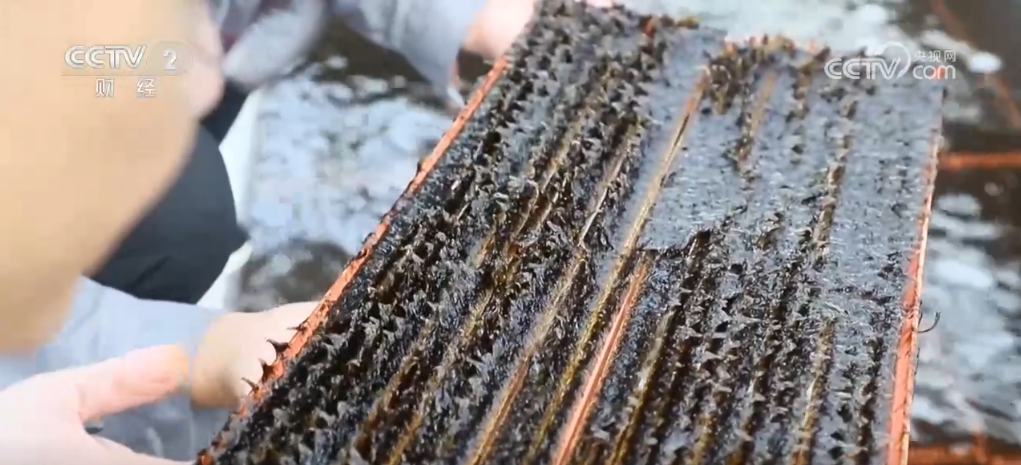 在福建省連江縣官塢村海帶育苗基地,黑壓壓的海帶苗整齊有序地平鋪在流動的海水里。漁民將一塊塊苗簾從苗池里打撈上來,解開繩結(jié)裝入泡沫箱中,準(zhǔn)備陸續(xù)運往大連。 這批海帶苗是當(dāng)?shù)刈灾髋嘤暮?,具有耐高溫、產(chǎn)量高等特點,成活率超過95%,往年在大連海區(qū)養(yǎng)殖5到6個月時間,畝產(chǎn)新鮮海帶可達30—35噸。