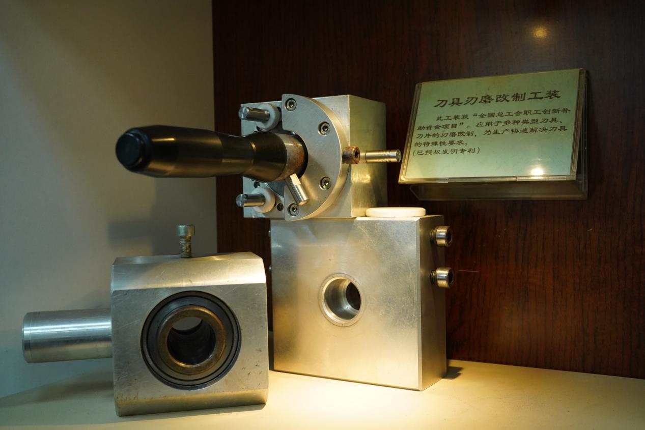 作為工業(yè)機(jī)床的“牙齒”,刀具是關(guān)鍵耗材。羅軍注意到,集團(tuán)每年在刀具上的使用成本高達(dá)幾千萬(wàn)元,刀具損耗的開(kāi)銷相當(dāng)可觀?!耙话训毒叩某鰪S價(jià)格在幾百到上萬(wàn)元不等,一旦有磨損缺口就不能用了,我當(dāng)時(shí)就想為什么不能自己磨來(lái)使用呢?”說(shuō)干就干,幾經(jīng)實(shí)踐后,羅軍工作室的團(tuán)隊(duì)成功發(fā)明了一種多功能磨刀裝置,可對(duì)廢舊刀具進(jìn)行二次改制延長(zhǎng)刀具使用壽命。