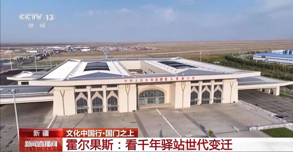 總臺央視記者 王莉:這里是位于新疆伊犁哈薩克自治州的霍爾果斯公路口岸,這座巍峨雄偉的建筑就是霍爾果斯第六代國門,這里與哈薩克斯坦隔河相望,是中國向西開放的重要窗口和連接亞歐大陸的“黃金口岸”。千年以前,霍爾果斯就是古絲綢之路上的重要驛站,一百多年前,霍爾果斯公路口岸正式通關(guān),從20世紀(jì)50年代的第一代國門,到如今的第六代國門,國門的變遷,見證著霍爾果斯的這座邊境城市的蓬勃發(fā)展。