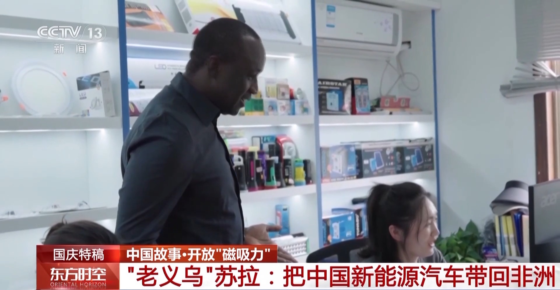 如今,以小商品聞名于世的義烏國際商貿(mào)城,也有了大商品——全國首個(gè)新能源產(chǎn)品市場(chǎng)在去年投用。從太陽能照明燈到新能源汽車,這里幾乎可以買到市面上所有的新能源產(chǎn)品。來自非洲塞內(nèi)加爾的蘇拉,在義烏生活經(jīng)商已經(jīng)21年。不久前,他從義烏、上海等地一口氣采購了100輛新能源汽車發(fā)回塞內(nèi)加爾。