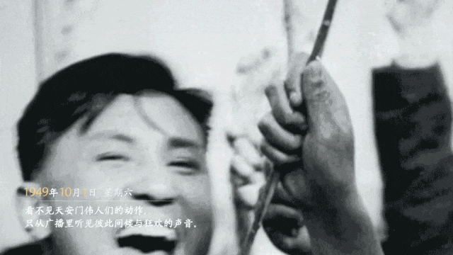 看不見天安門偉人們的動(dòng)作,只從廣播里聽見彼此問候與狂歡的聲音。