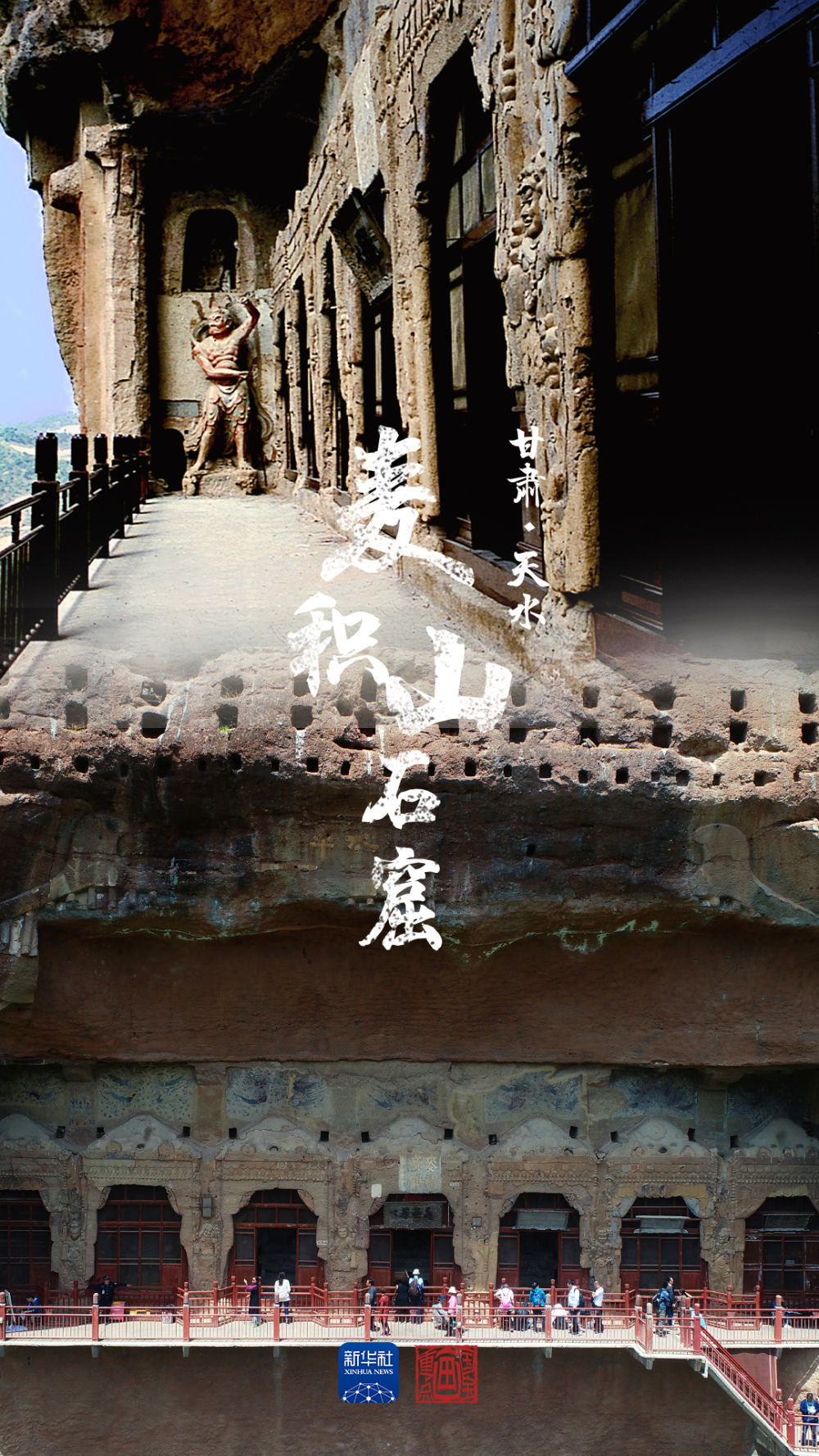 自十六國時期始,麥積山石窟開窟造像歷經(jīng)千余年不斷。沿著凌空飛架的棧道蜿蜒而上,猶如攀緣九霄。千姿百態(tài)的造像、總面積約一千平方米的壁畫以及精雕細琢的仿木崖閣建筑等文物遺跡依次在眼前流轉。