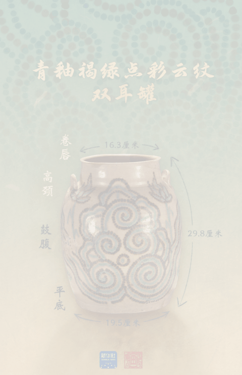 青釉褐綠點彩云紋雙耳罐