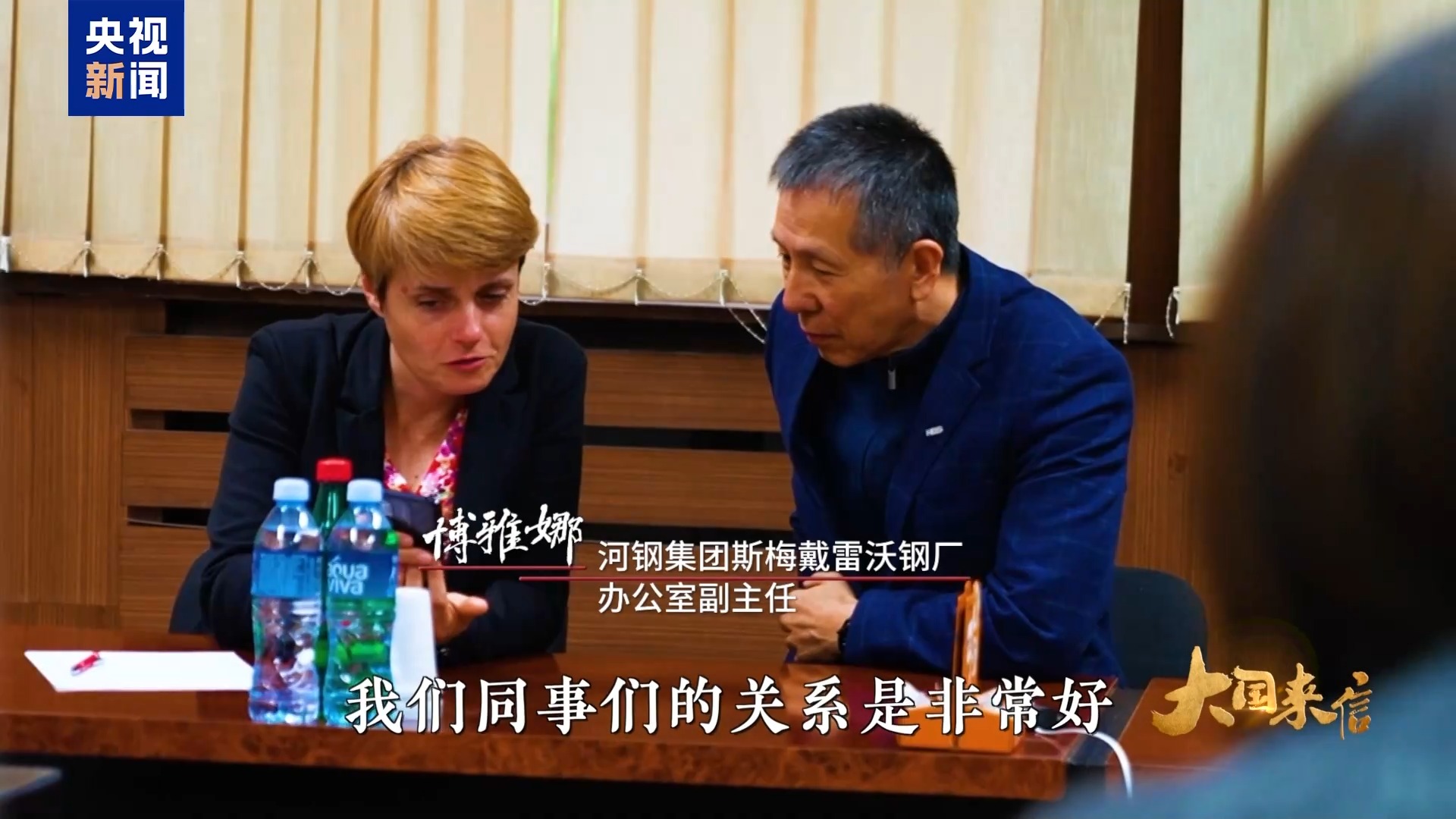 河鋼集團(tuán)斯梅戴雷沃鋼廠辦公室副主任 博雅娜:我們同事們的關(guān)系是非常好。如果有啥事,我們是幫忙。他們經(jīng)常給我做餃子,他們都知道我喜歡吃。