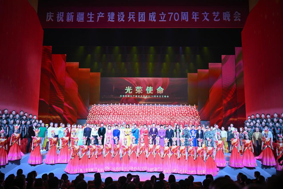 10月6日,慶祝新疆生產(chǎn)建設(shè)兵團(tuán)成立70周年文藝晚會(huì)《光榮使命》在烏魯木齊文化中心大劇院舉行。
