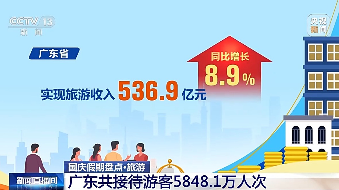 廣東省10月1日至7日累計接待游客5848.1萬人次,按可比口徑同比增長6.2%;實現旅游收入536.9億元,同比增長8.9%。古驛道沿線重點區(qū)域、紅色旅游經典景區(qū)、鄉(xiāng)村旅游點和歷史古村落等,成為旅游出行熱點。
