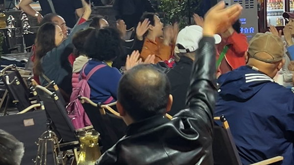 游客齊聲合唱《蘋果香》。中國青年網(wǎng)記者 馬志強(qiáng)攝