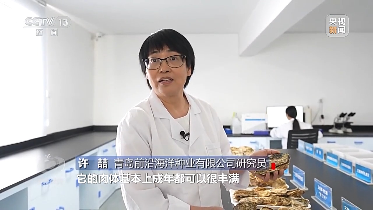 青島前沿海洋種業(yè)有限公司研究員 許喆:“正常的牡蠣都是二倍體,它們兩個的年齡差不多,二倍體要比三倍體小很多,因為三倍體多了一套染色體,繁殖季節(jié)不排漿,它的肉體基本上全年都可以很豐滿,可以提供給大家鮮美的生蠔。”