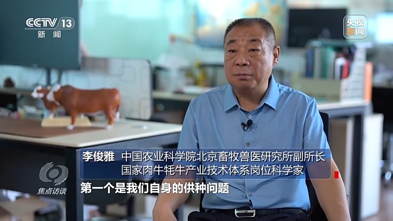 中國農(nóng)業(yè)科學(xué)院北京畜牧獸醫(yī)研究所副所長、國家肉牛牦牛產(chǎn)業(yè)技術(shù)體系崗位科學(xué)家 李俊雅:“核心種源依然依靠進口,存在很多問題,一是我們自身的供種問題,在特殊時期,如果我們不能從國外進口相應(yīng)的優(yōu)秀種質(zhì),我該怎么做;另外,我們引的這些國外的品種基本上都不是本品種的最優(yōu)秀種?;蛘叻N牛的凍精。我們必須要培育出滿足我們國家主流市場供給型的品種。