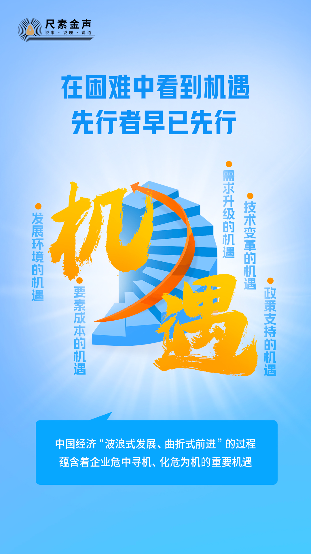 辯證看,應(yīng)對困難、解決問題的過程,往往也是育新機(jī)、開新局的過程。當(dāng)前,中國經(jīng)濟(jì)“波浪式發(fā)展、曲折式前進(jìn)”的過程,蘊(yùn)含著企業(yè)危中尋機(jī)、化危為機(jī)的重要機(jī)遇。