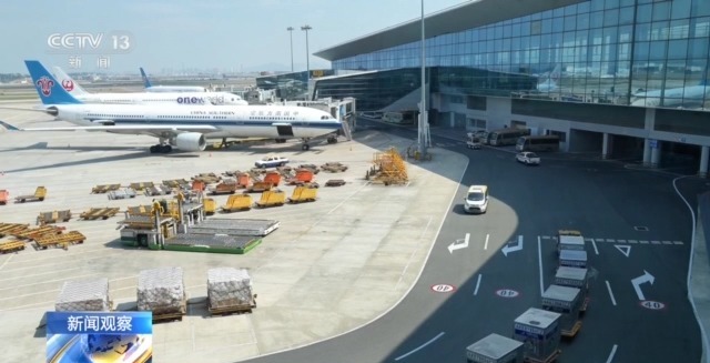 東莞港國際空運有限公司副總經(jīng)理 蕭智亮:我們空港中心是全球首個直達機場空側(cè)的跨關(guān)境??章?lián)運項目,貨物在空港中心完成裝車,送達我們的專用碼頭,通過海運的方式到達香港國際機場飛往全球。