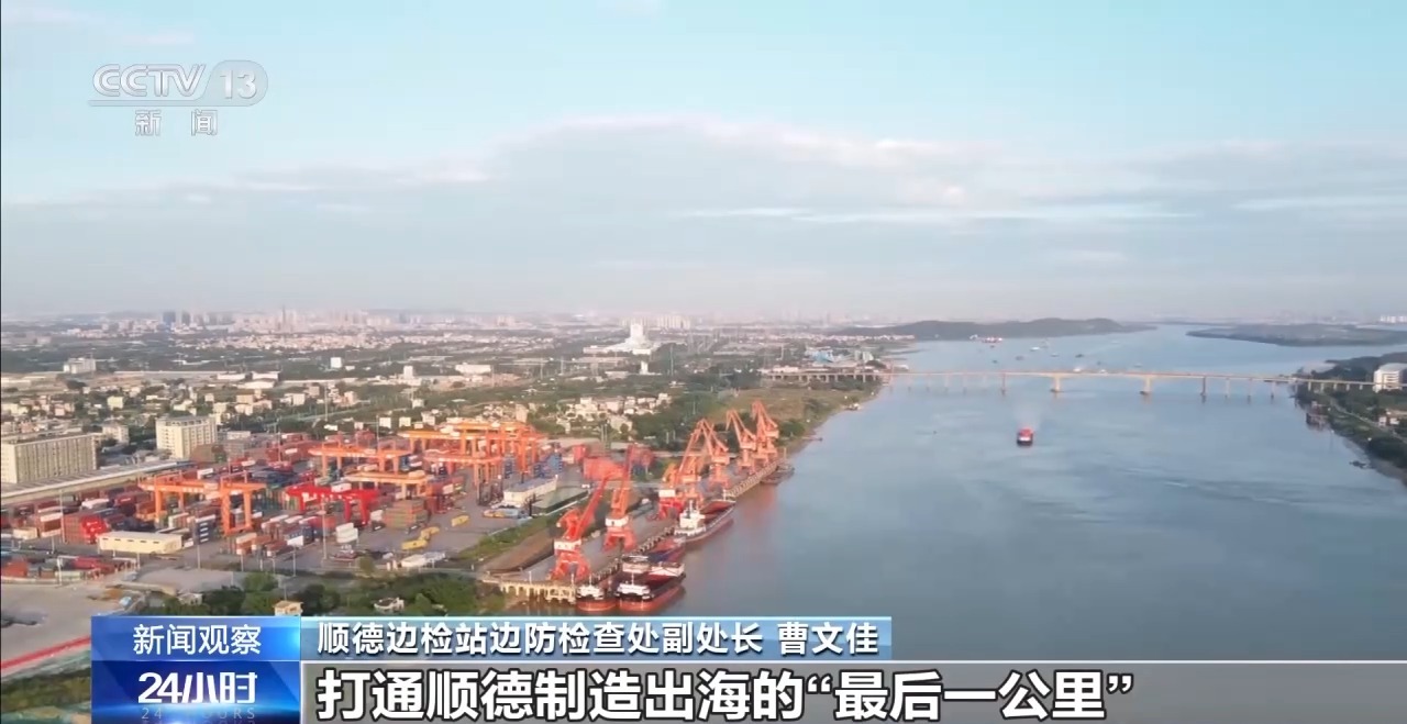 順德邊檢站邊防檢查處副處長 曹文佳:在順德區(qū)4個貨運碼頭,對載運駐地企業(yè)成交訂單的出入境船舶,實行船舶邊檢查驗“零待時”,一次辦妥出境手續(xù)就近出海,保障每天3000多個滿載“順德智造”電器產(chǎn)品的集裝箱,從走進碼頭到裝船一路高效暢通,打通順德制造出海的“最后一公里”。
