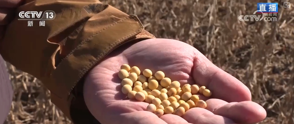 這片地里正在收獲的就是蛋白豆,從春天播種時(shí),農(nóng)業(yè)專家和科研團(tuán)隊(duì)就深入到大豆主產(chǎn)區(qū),為農(nóng)戶們帶來了多年通過實(shí)驗(yàn)篩選的優(yōu)質(zhì)品種。這些種子是從幾十個(gè)品種中選取出來的抗病蟲害、蛋白質(zhì)含量更高的優(yōu)良豆種。同時(shí),通過實(shí)地種植測(cè)產(chǎn)試驗(yàn),專家們指導(dǎo)農(nóng)戶把每畝地里種植的大豆,從多年以來的8000株增加到1萬株。通過合理的種植布局和科學(xué)的田間管理,2024年的畝產(chǎn)可以達(dá)到450斤以上,比增密種植前畝產(chǎn)增收了五六十斤。