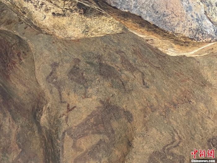 富含鐵礦石和動(dòng)物膠質(zhì)的顏料將這一幕拓印在避風(fēng)的巨石上,距離胡安什別克家40多公里的汗德尕特蒙古族鄉(xiāng)敦德布拉克河谷,走一段路,就能相遇這幅萬(wàn)年前的人類滑雪活動(dòng)的“活化石”。