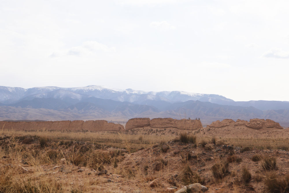 16日,焉支山下的漢明長(zhǎng)城遺址。新華社記者 劉雅萱 攝
