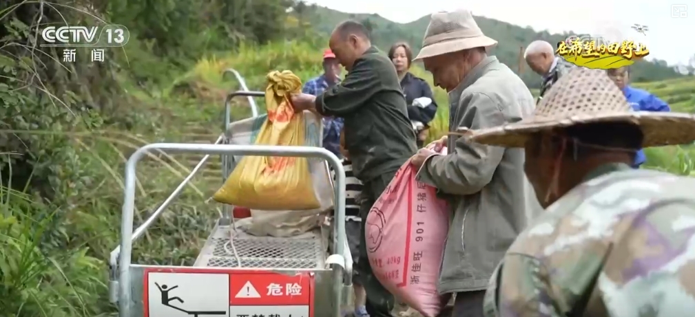 在景寧縣沙灣鎮(zhèn)葉橋村的高山梯田上,村民們正忙著將成熟的稻谷收割、脫粒,裝袋后通過(guò)軌道車(chē)運(yùn)至山下,山野上下一派豐收的繁忙景象。而十多年前,這里因水源缺乏、外出務(wù)工人員增多,曾是一片撂荒地。