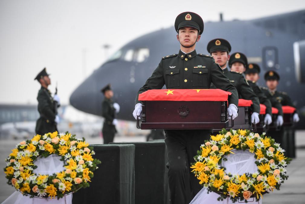 2023年11月23日,第十批在韓中國人民志愿軍烈士遺骸抵達沈陽桃仙國際機場。