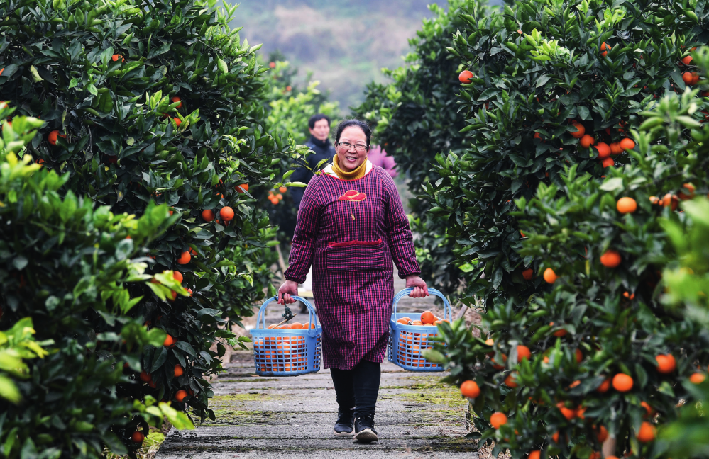 重慶市璧山區(qū)七塘鎮(zhèn)躍進(jìn)村村民在提運(yùn)剛采摘的血橙(資料照片)王全超攝 / 本刊