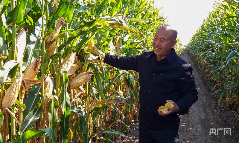 玉米豐收,內蒙古“種糧狀元”馬忠臣喜上眉梢(央廣網(wǎng)見習記者 楊亞東 攝)