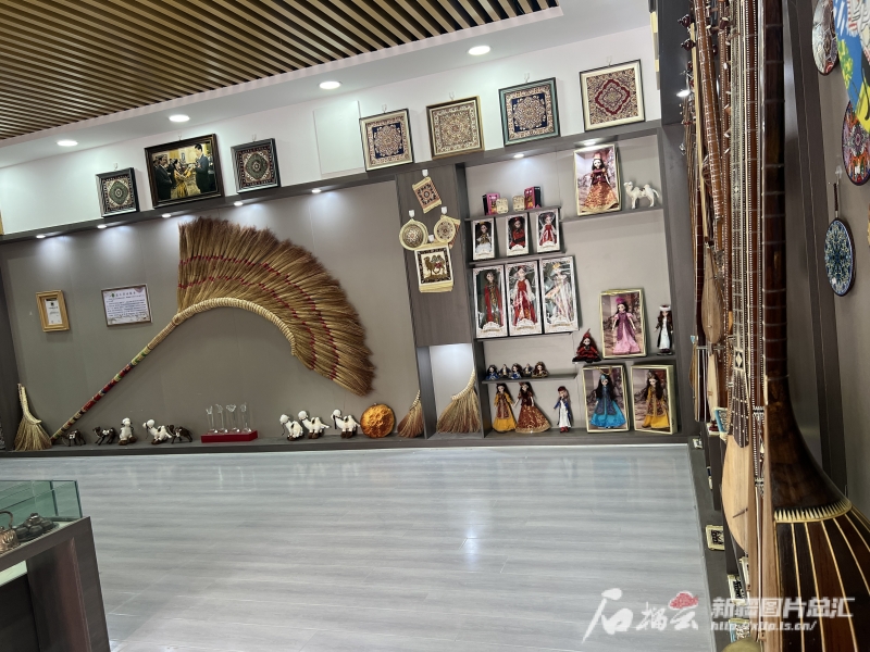疏附縣托克扎克鎮(zhèn)阿亞格曼干村村委會(huì)里的手工藝品展示館,陳列著各種手工藝品。石榴云/新疆日報(bào)記者 拍熱扎提·阿不都攝