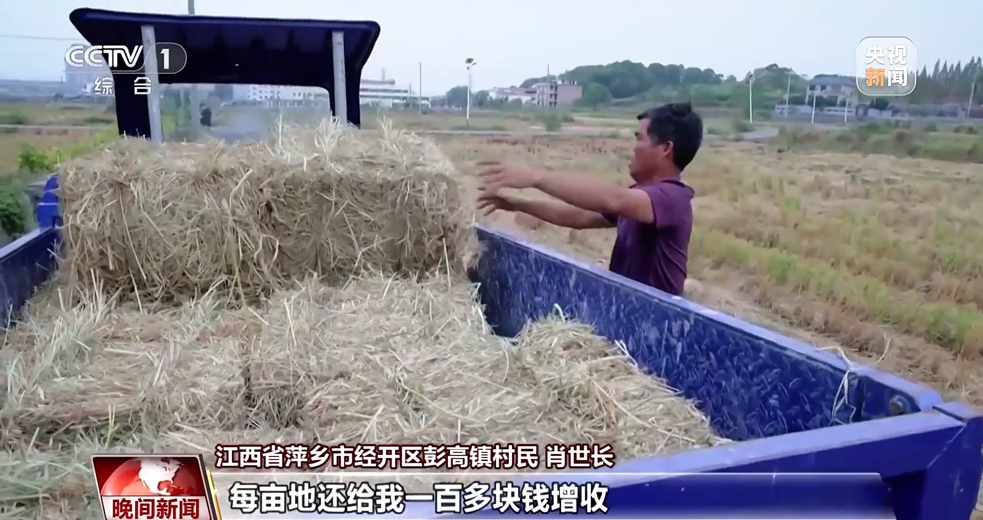 江西省萍鄉(xiāng)市經(jīng)開區(qū)彭高鎮(zhèn)村民 肖世長(zhǎng):秸稈處理很麻煩,運(yùn)走還需要自己額外花錢請(qǐng)人過(guò)來(lái)幫忙?,F(xiàn)在他們上門回收,每畝地還給我一百多塊錢增收。