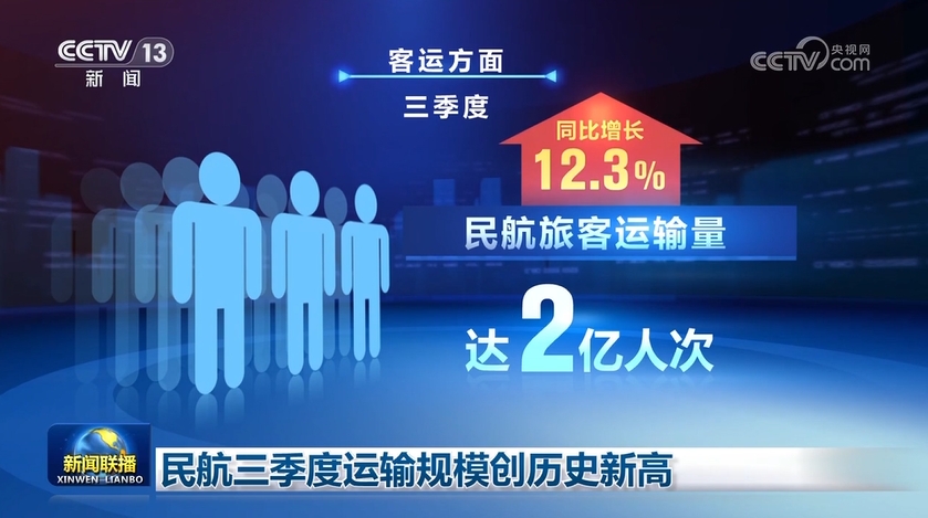 記者從中國民航局了解到,今年三季度民航全行業(yè)共完成運(yùn)輸總周轉(zhuǎn)量403.5億噸公里,同比增長19.8%。客貨運(yùn)規(guī)模創(chuàng)歷史新高。